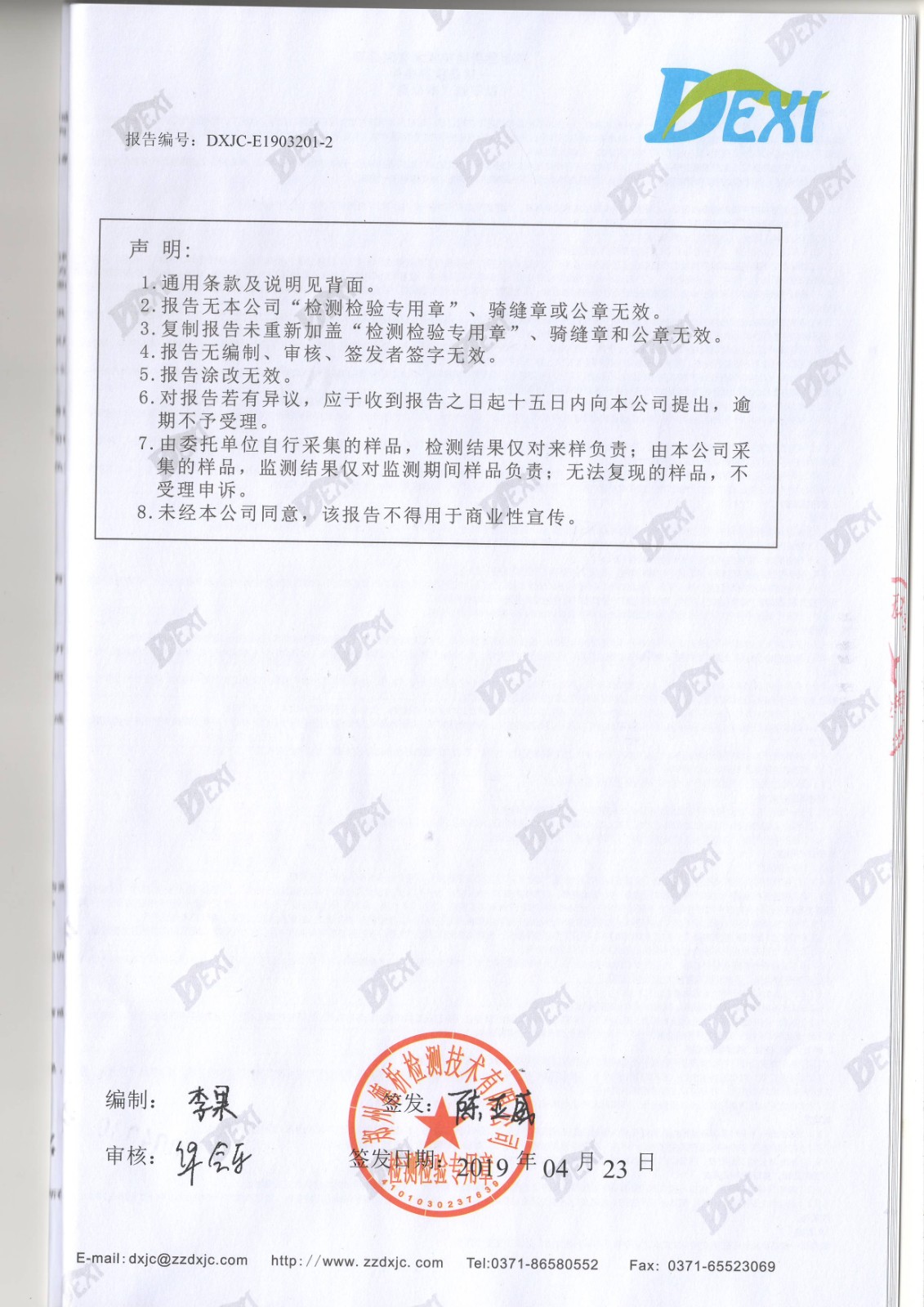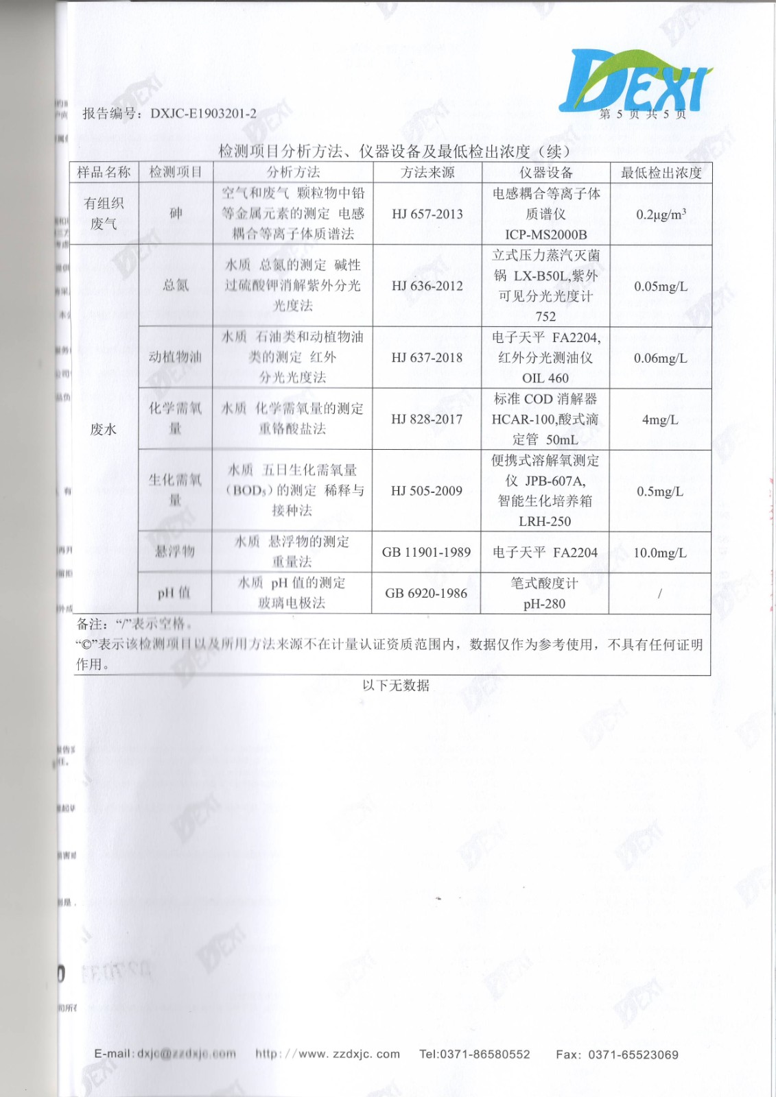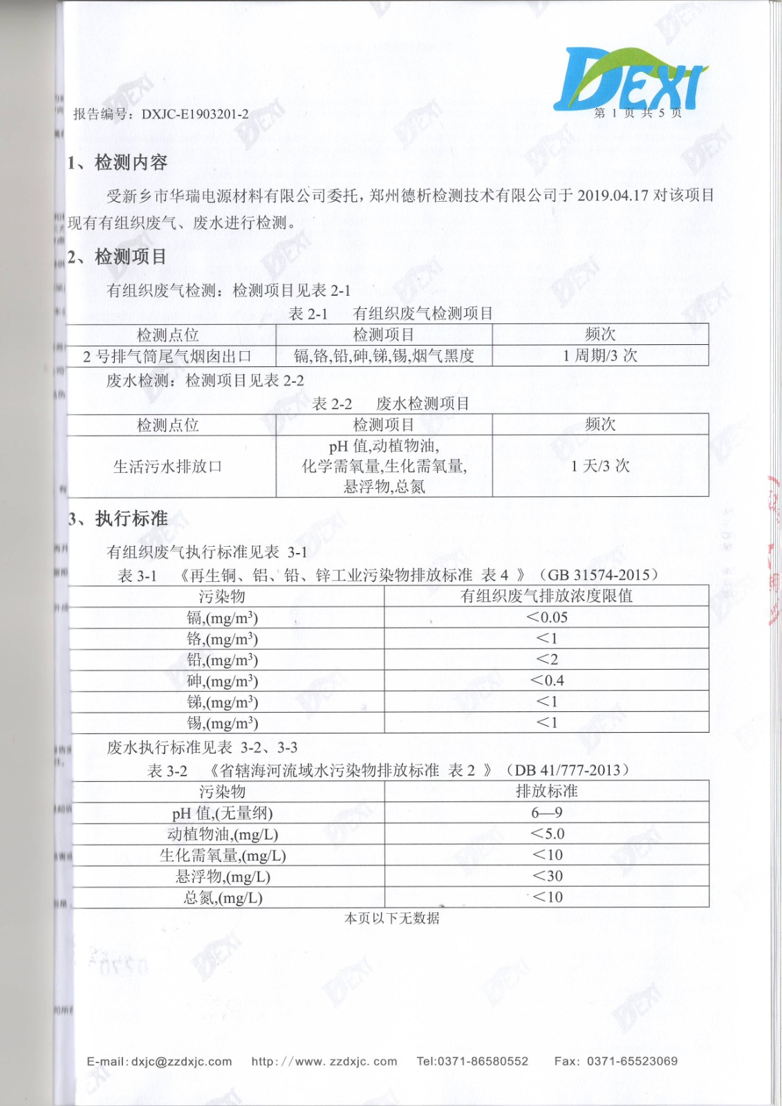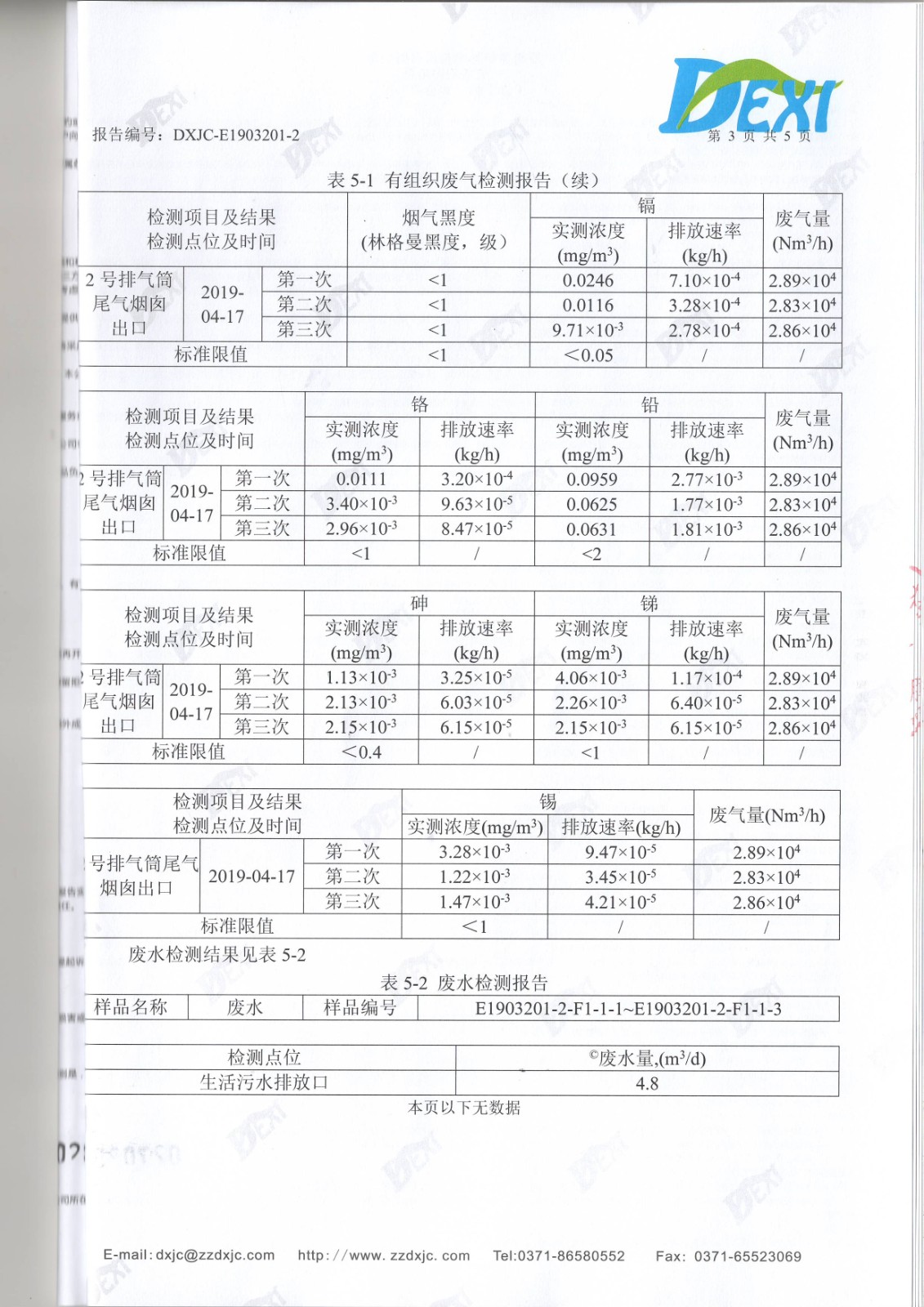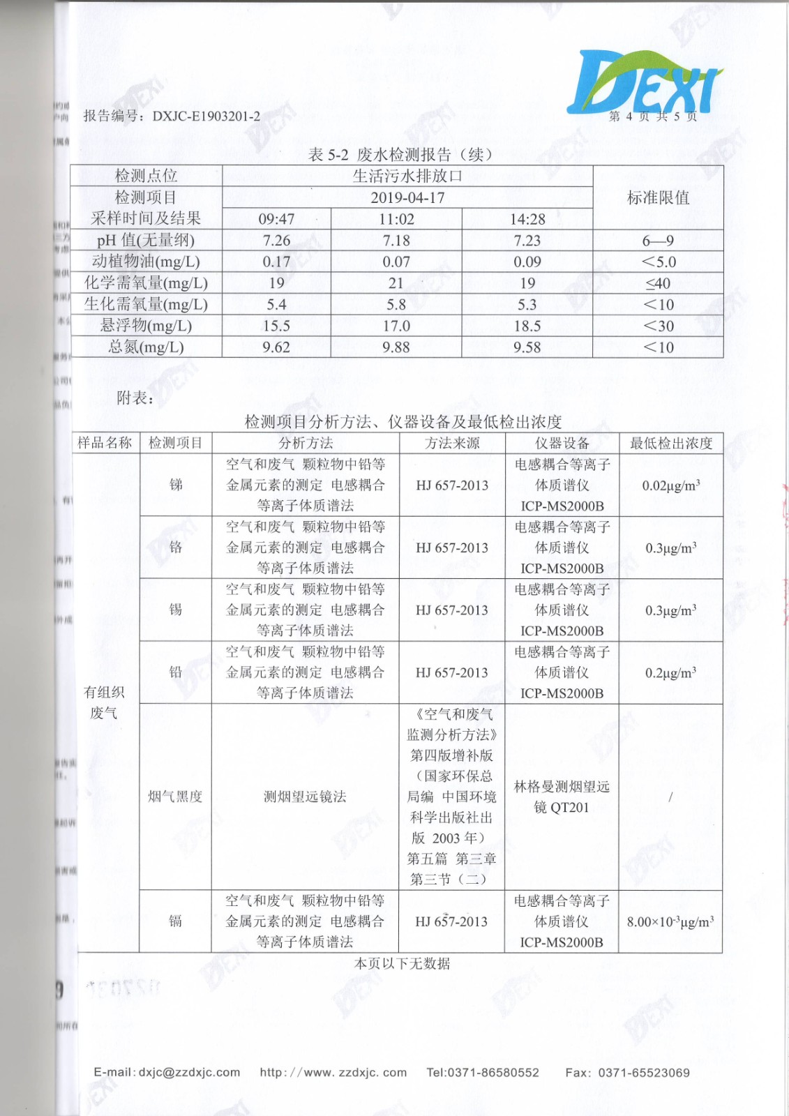 2019年4月份廢水廢氣檢測(cè)報(bào)告