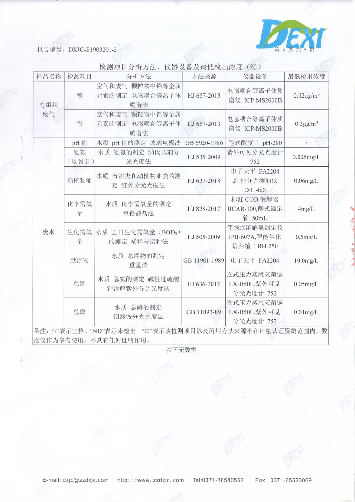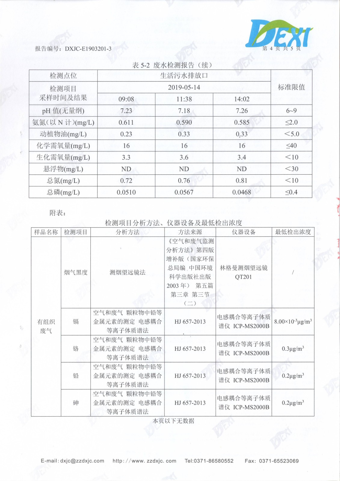 2019年5月份廢水廢氣檢測(cè)報(bào)告