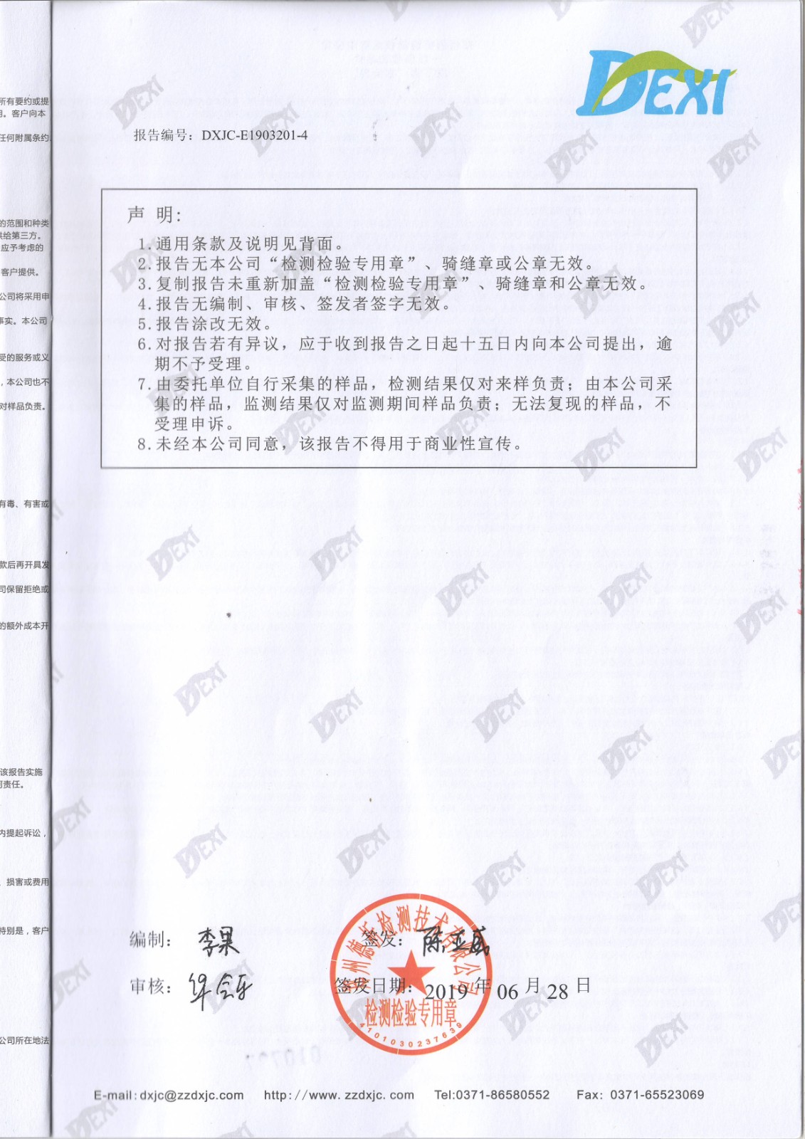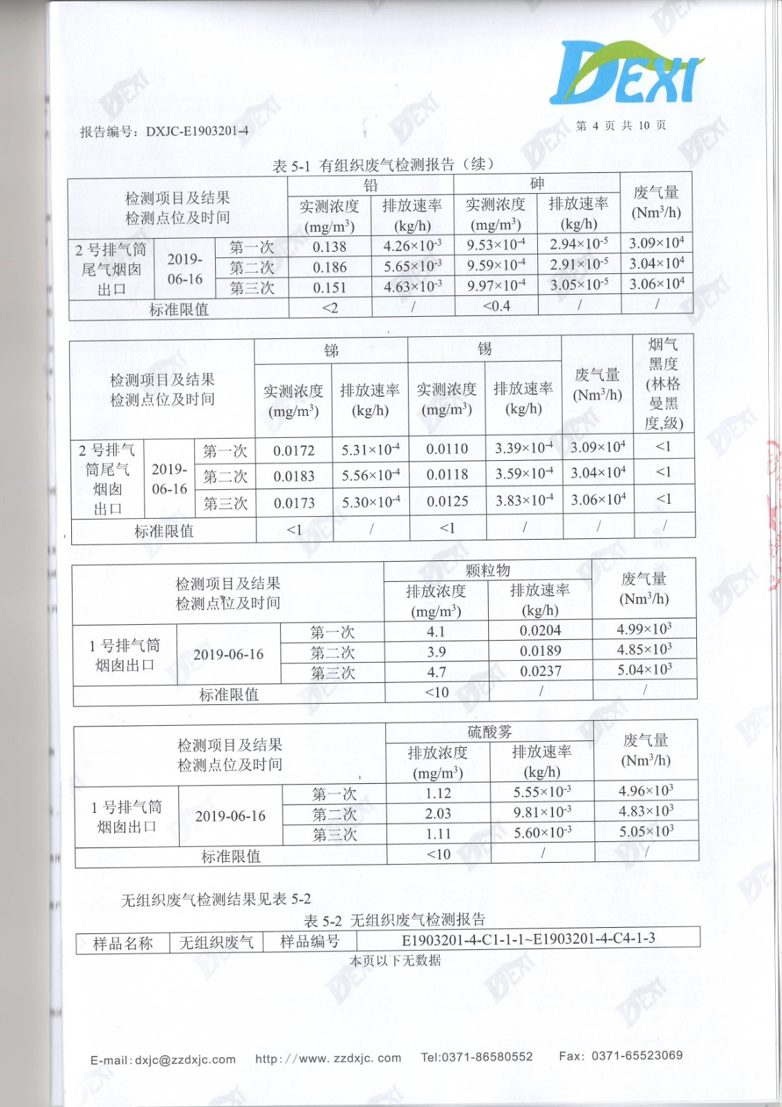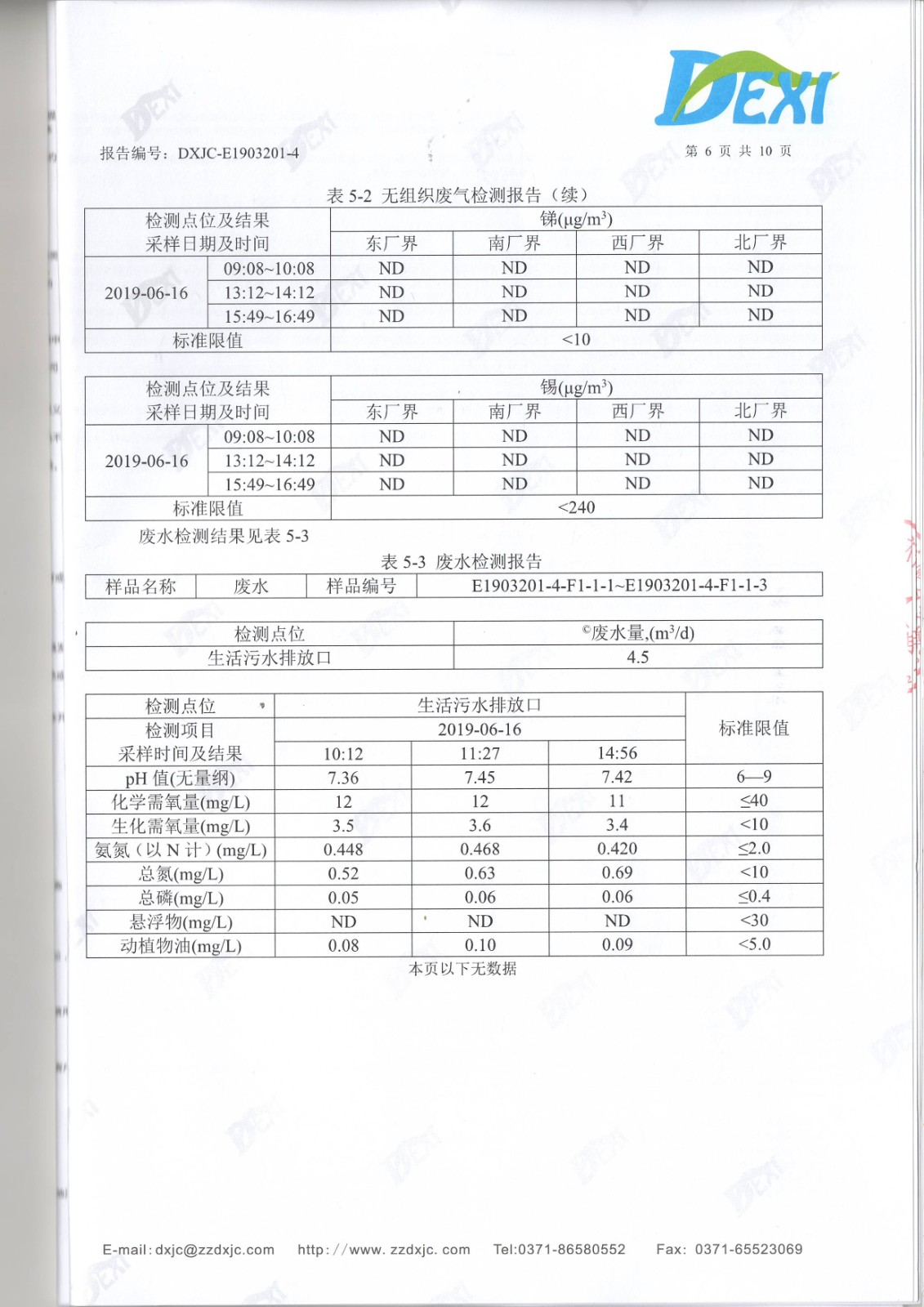 2019年6月廢氣廢水檢測