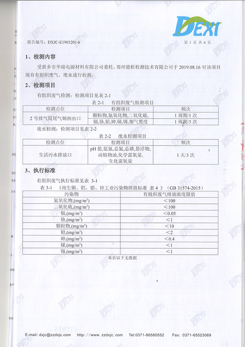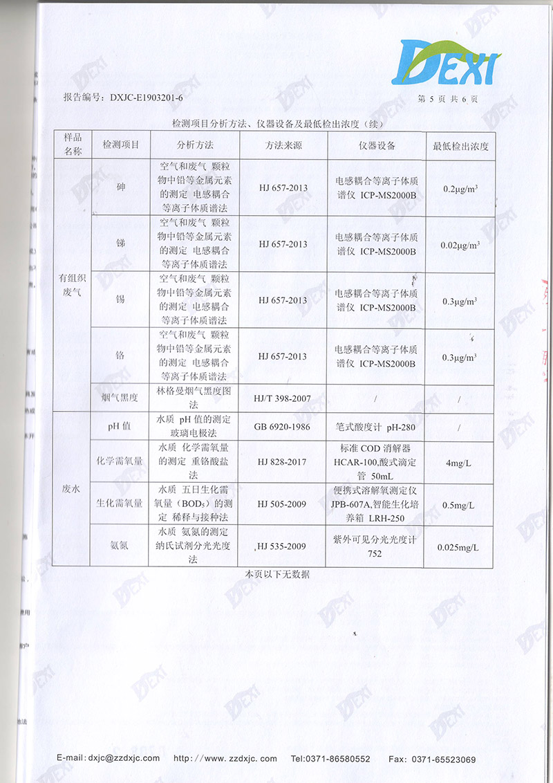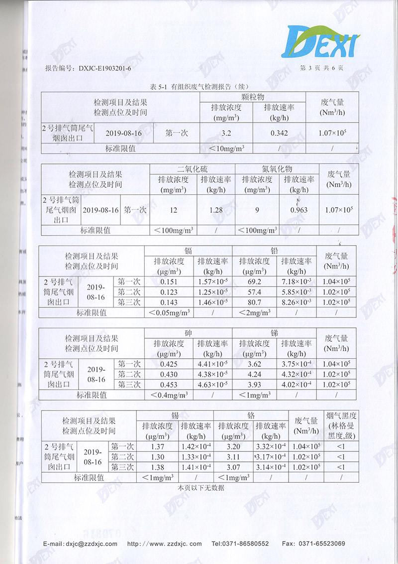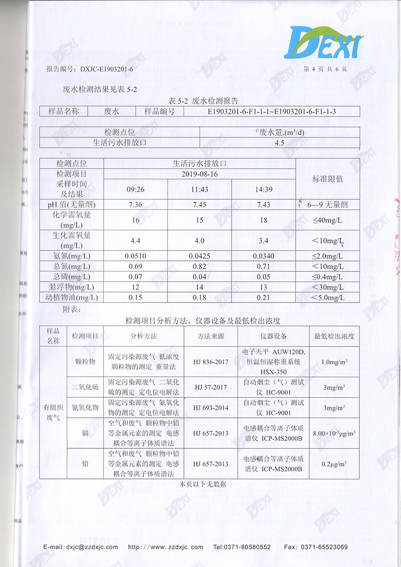 2019年8月份廢氣廢水檢測