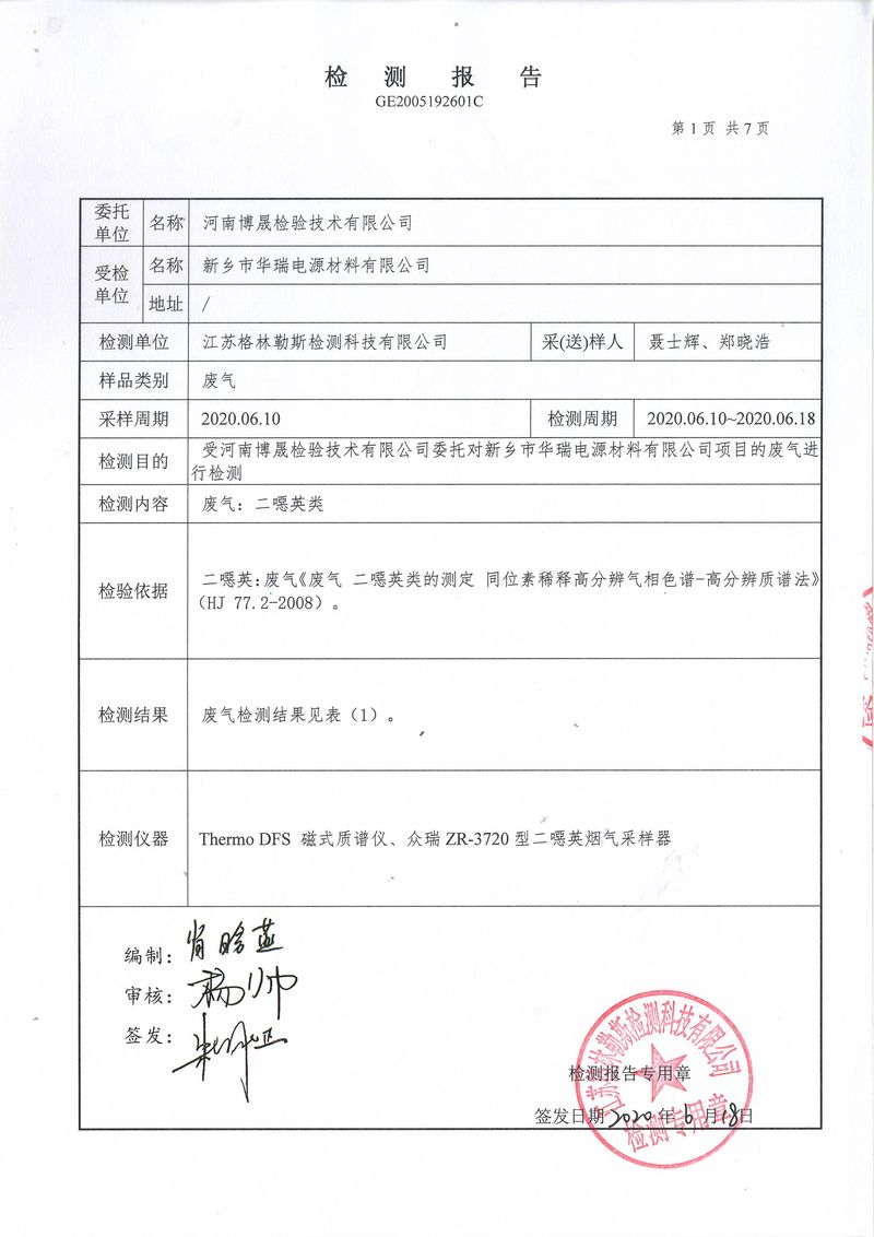 2020年6月份的檢測報告