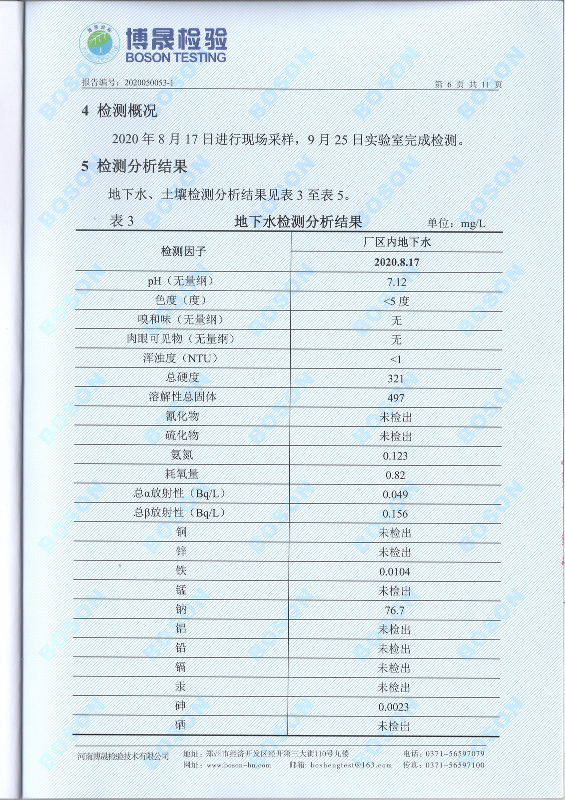 2020年九月份土壤地下水檢測(cè)報(bào)告