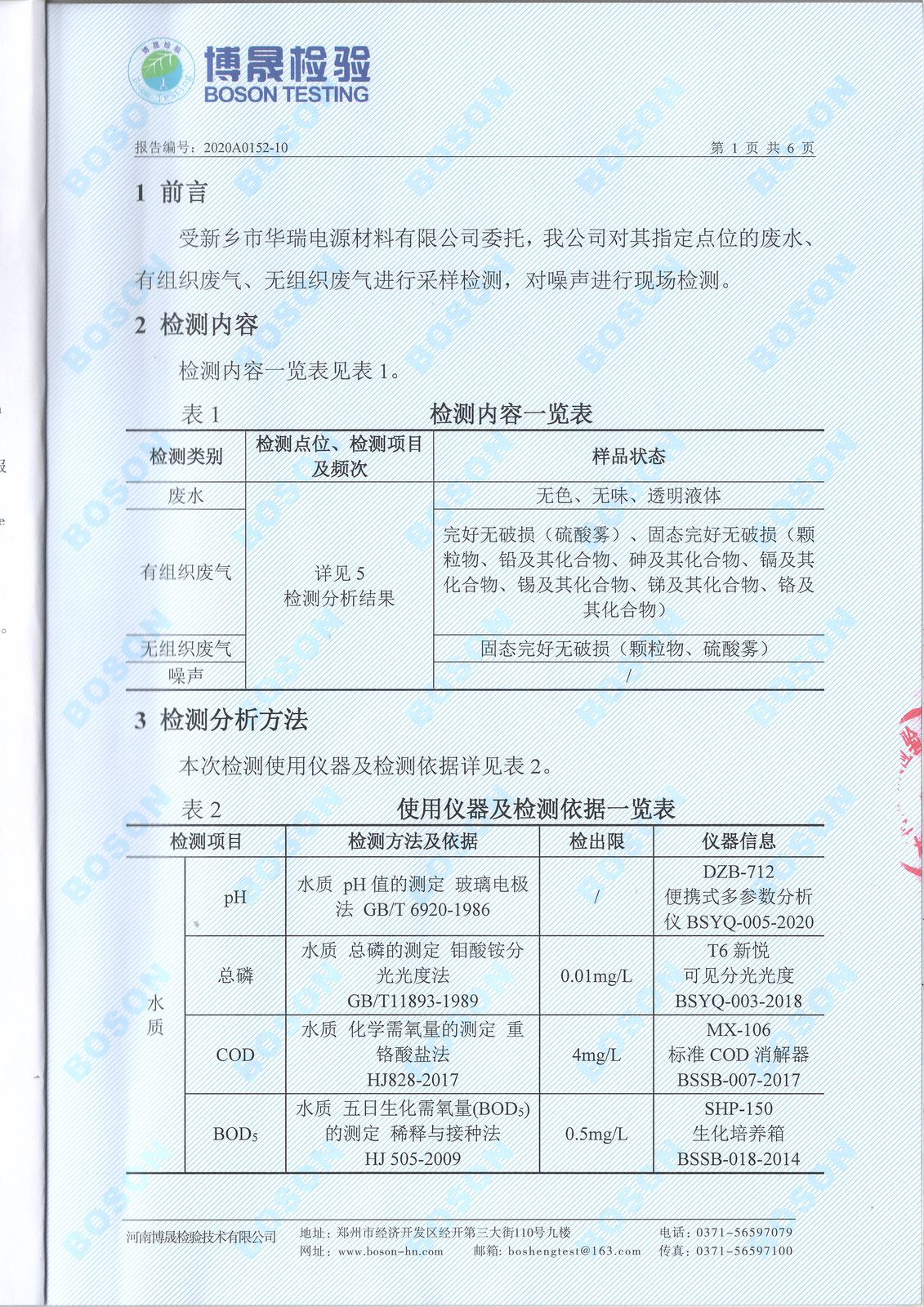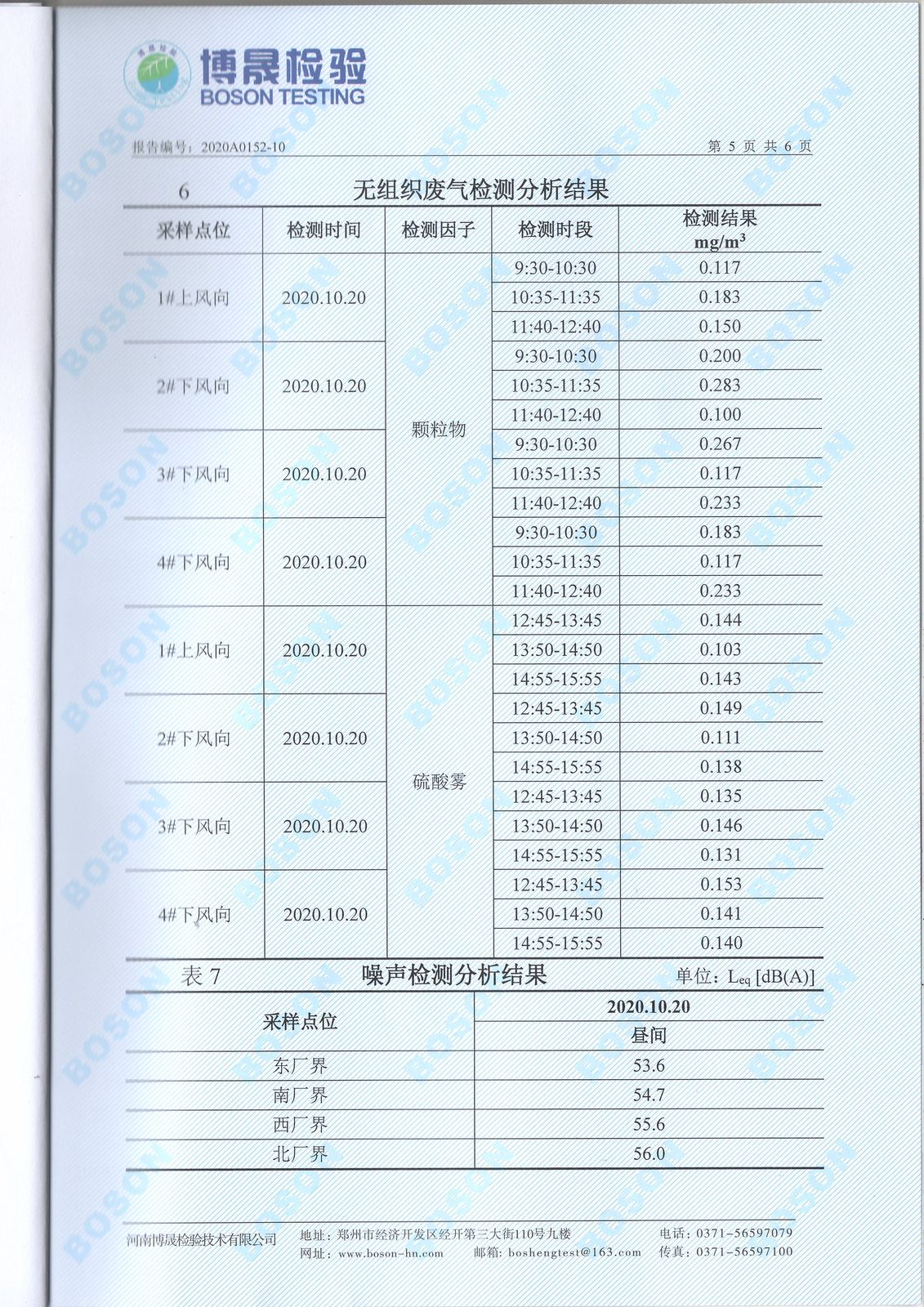 2020年十月份水氣噪檢測(cè)報(bào)告