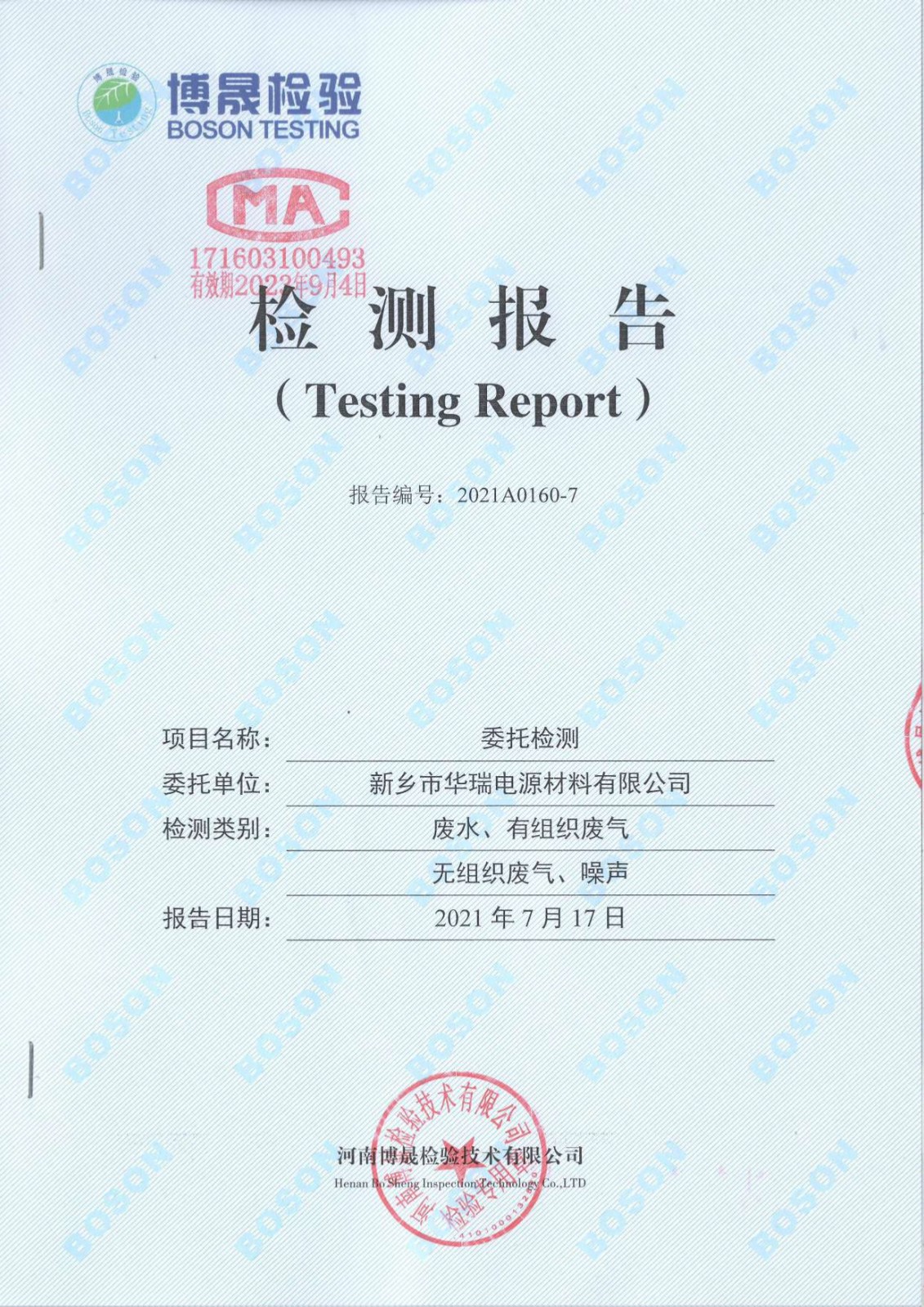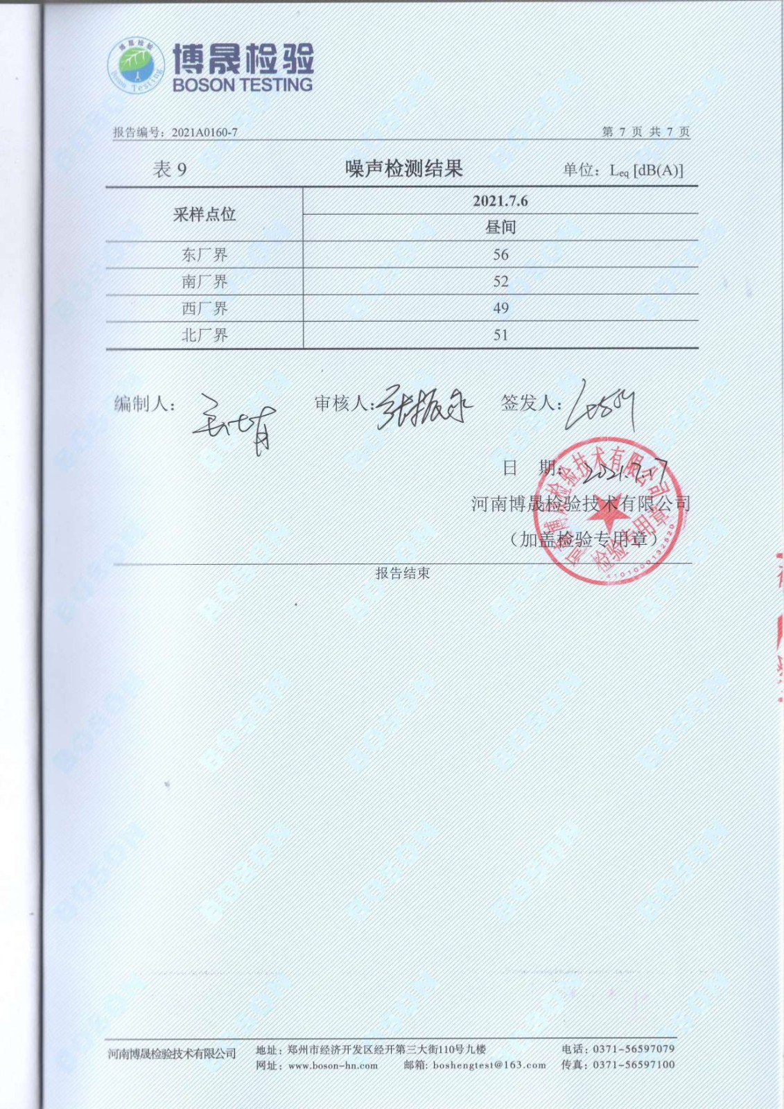 2021年7月廢氣廢水無組織噪聲檢測報告