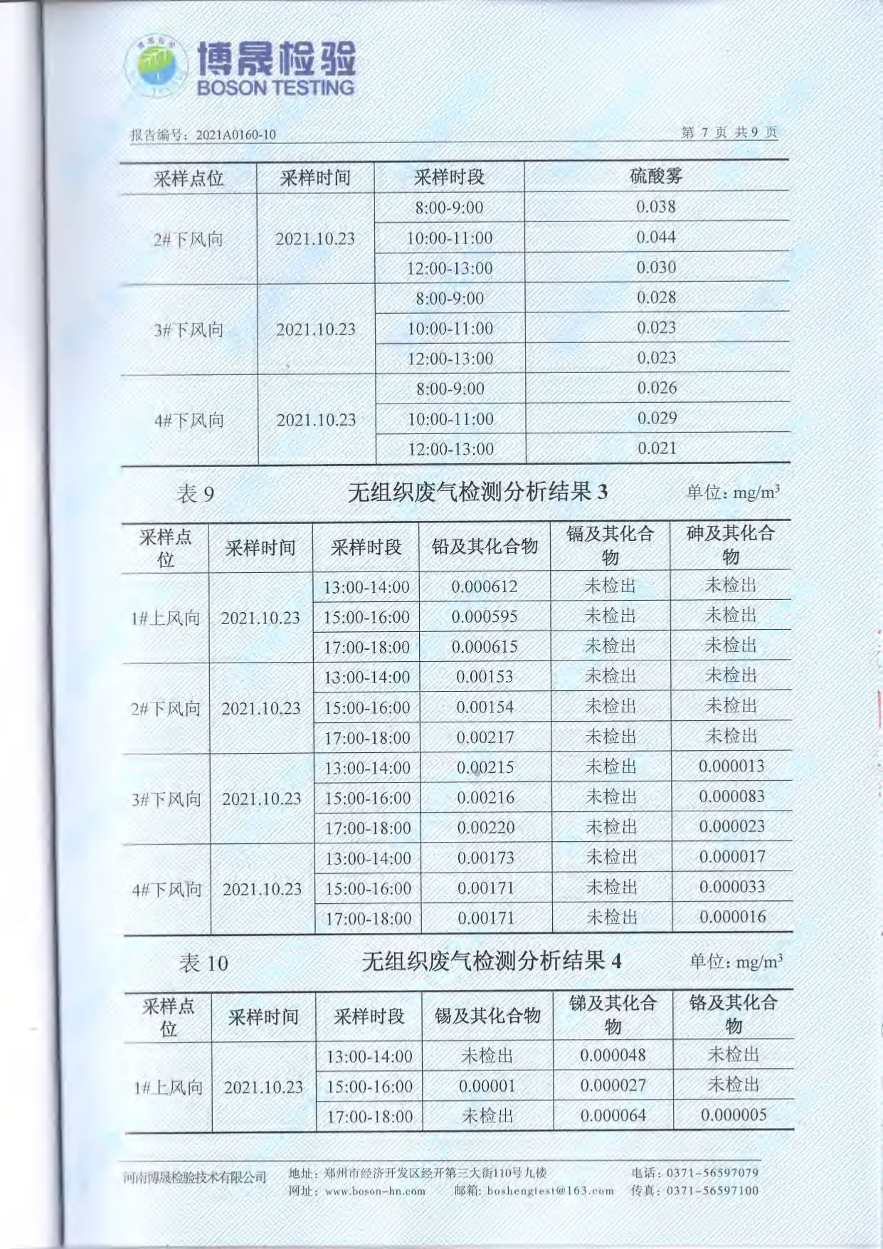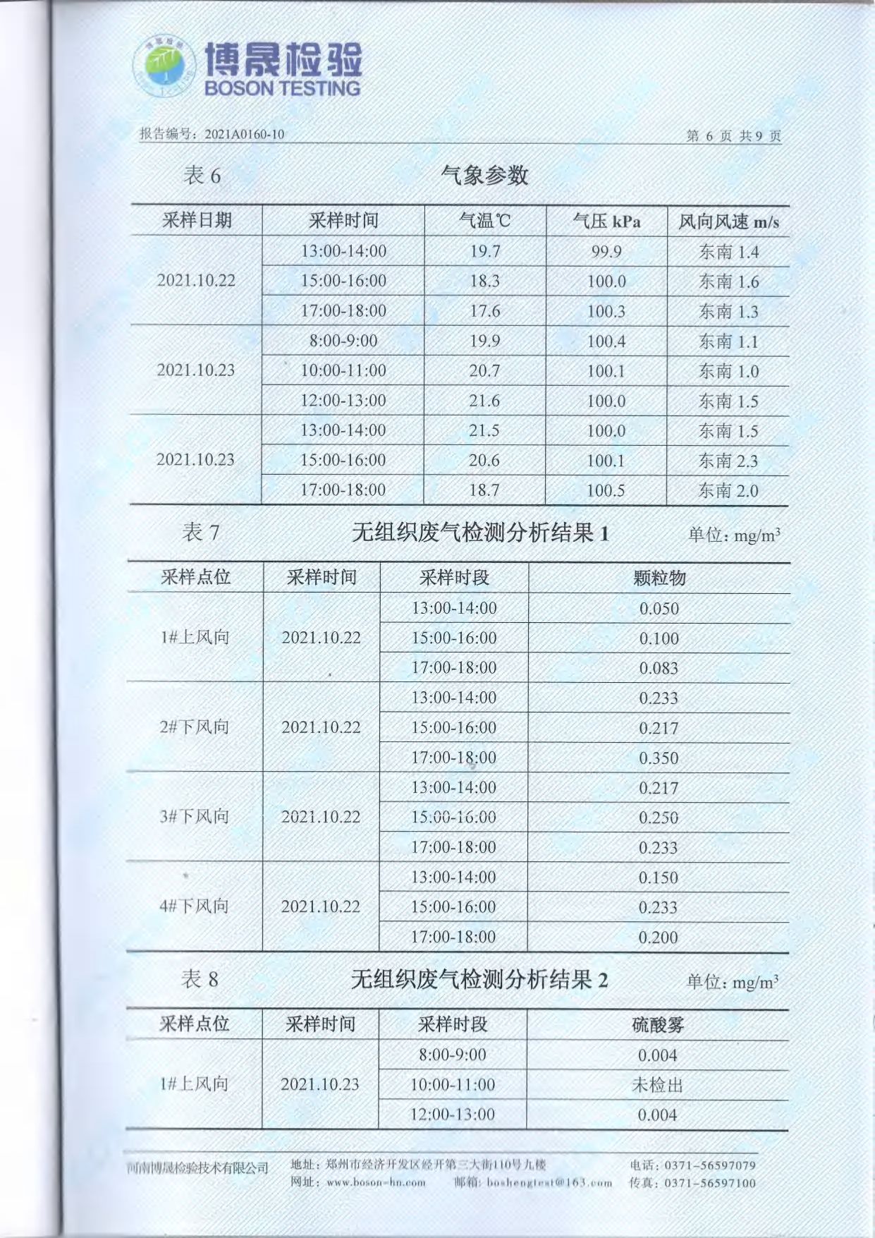 2021年10月廢水、有組織廢氣、無(wú)組織廢氣、土壤、噪聲監(jiān)測(cè)