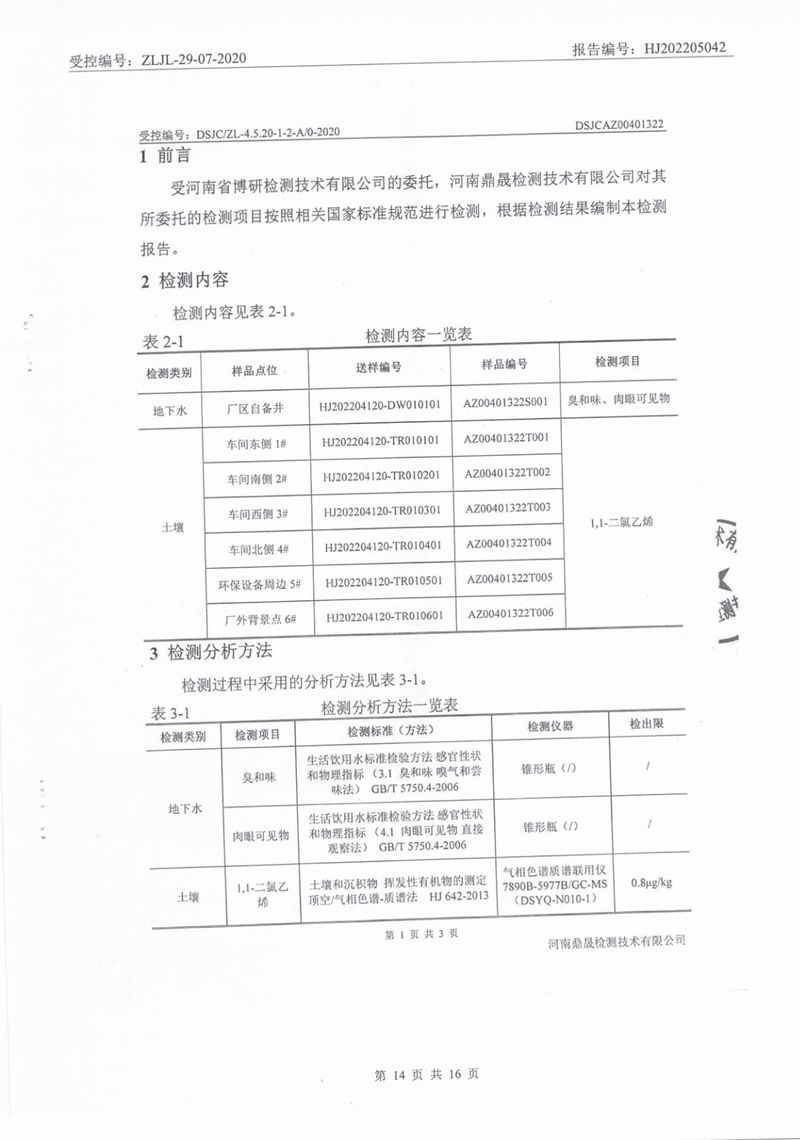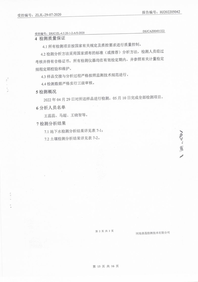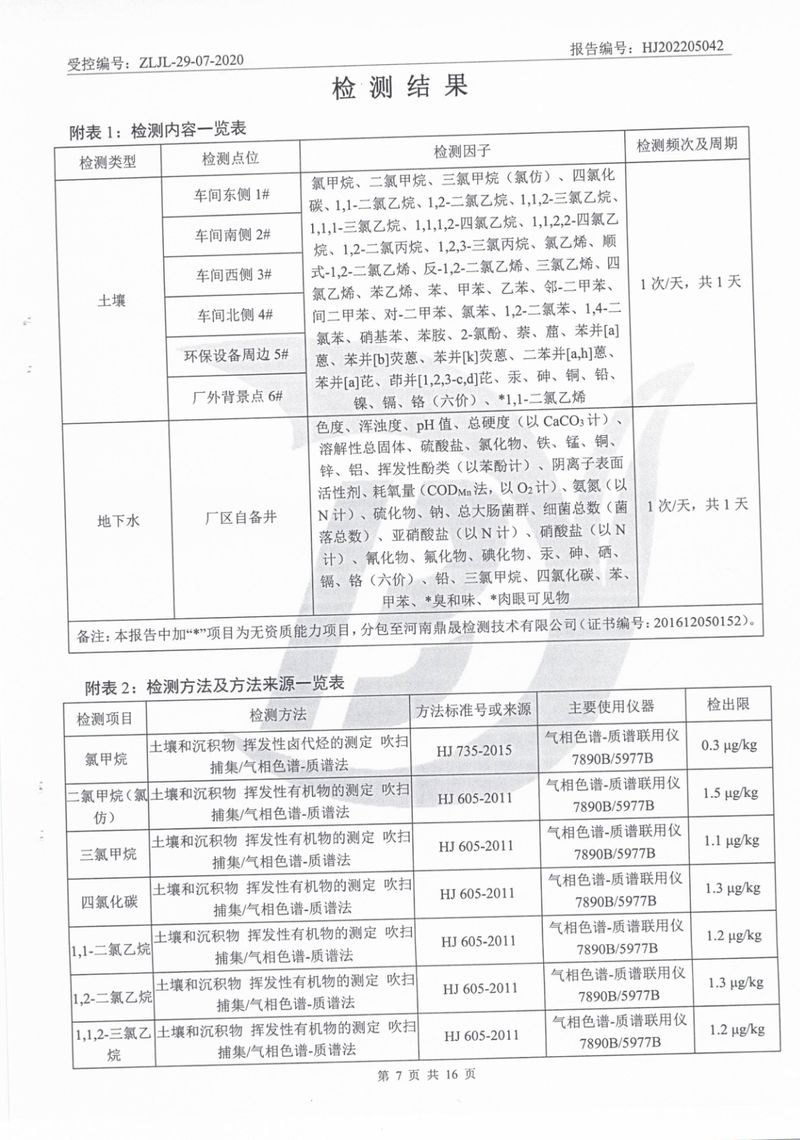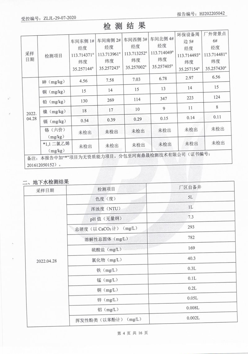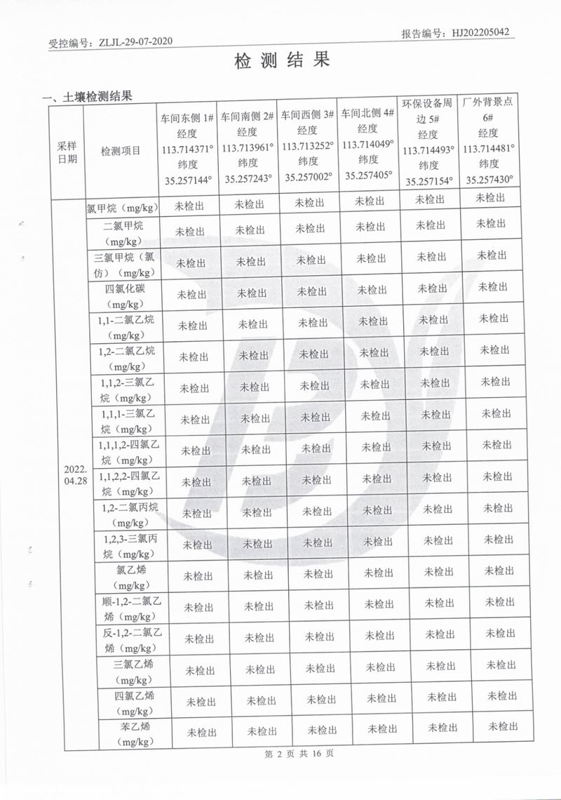 2022年5月土壤地下水檢測報(bào)告